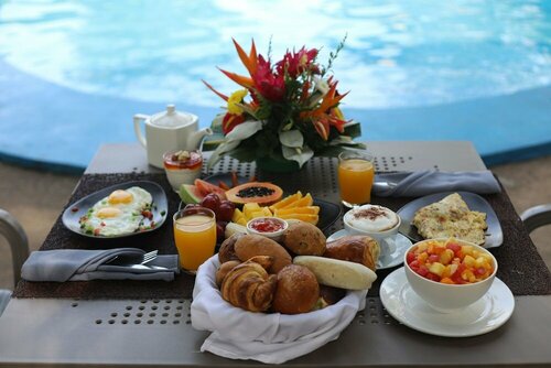 Стильный этнический отель с бассейном и рестораном. Останавливалась три года назад, не повезло с номером: обшарпанная мебель. Но это единственный отель в таком старинном стиле. Второй раз приезжали семьей поужинать в августе этого года. Официантка работала ужасно: убегала, ничего не объясняя, приходилось не кольцо раз ее вылавливать, чтобы сделать заказ. Меню на среднем уровне