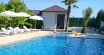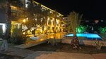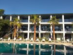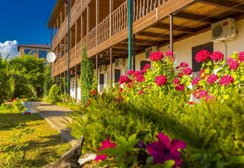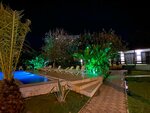 Отель просто бомбический, деревья плодовые, хурма, мандарины, инжир, фейхоа, пальмы, вообщем очень уютно, бассейн большой, подогревается, вечером включается подсветка, всё красиво.територрия ухожена,все метут и метут.Шезлонги есть бесплатные на море, и на бассейне шезлонги с матрасами.