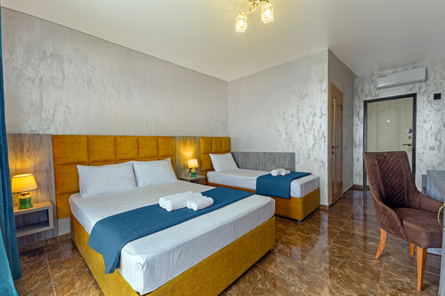 Отдыхали в отеле Eco Life семьёй из четырёх человек в котедже, в двухкомнатном люксе. Прекрасный номер с современным ремонтом, очень удобные кровати с ортопедическими матрасами. В каждой комнате есть кондицианер и телевизор со смарт ТВ. Очень уютный стильный и чистый номер, есть небольшая кухня оснащённая микроволновкой, чайником и холодильником, есть вся необходимая посуда и приборы. Душевая комната совмещённая с туалетом, есть всё необходимое: полотенца, фен, гель для душа, шампунь, мыло и туалетная бумага. Красивая ухоженная территория, много зелени, чистый большой бассейн.