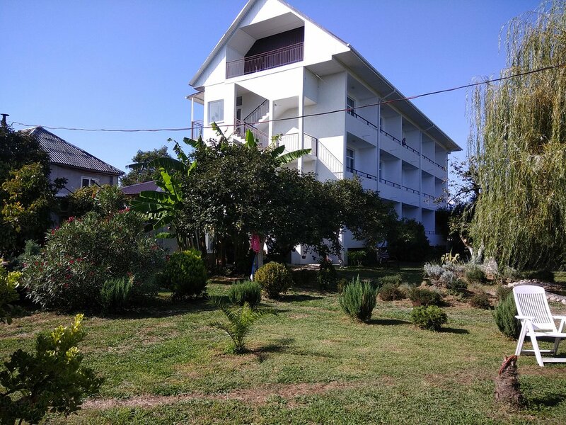 Хочется поделиться радостью пребывания в отпуске в прекрасной Абхазии, а именно в селе Алахадзы в гостинице Святая Абхазия! Прекрасное, чистое море, очень большой пляж, места хватает всем! Делаю акцент на море, так как для меня жто самое главное! Море в Абхазии самое чистое! Я был и в Крыму и на Кубани! Единственное по сравнению с Крымом, климат в Абхазии, впрочем как и на Краснодарском крае очень влажный. Субтропики. Но за за пару тройку дней привыкаешь!!! Пляж широкий, большой и просторный. Единственный минус-есть мусор. Но это вопрос к бескультурию отдыхающих. Чисто не там где убирают, а чисто где не мусорят. Люди курят прям на пляжу, здесь же кидают бычки, не отходят в сторону, а прям перед всеми, пьют -кидают бутылки. С собой не уносят. Потом эти же люди напишут в отзывах, что грязно. Отдыхали после морских и солнечных ванн в гостинице Святая Абхазия! Взяли двухкомнатные аппартаменты, так как мы многодетная семья! Особо хочется отметить гостепреимство хозяина Андея! С дороги ласково нас встретил, поговорил, проводил в номер! Номер новый, чистый, уютный. Отдыхать одно удовольствие! Есть очень хорошая столовая. Цены довольно бюджетные, но мы экономили, поэтому по большей части готовили сами. В большом корпусе есть кухня. Абхазию я полюбил за красоту, райскую зелень, цветы, кустарники, деревья. Здесь опять Андрей постарался, на всем участке прекрасный оазис! Мини дендрарий! Очень приятно отдыхать окруженный такой красотой, а из окна вид на горы! Я всем советую с деточками приезжать в это прекрасное, тихое и райское место! А Андрей всегда отзывчивый и на любую просьбу всегда откликнется и постарается всегда помочь!!!!!!!