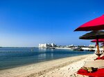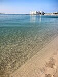 Пляж чистый. Шезлонгов хватает. Песок чистый. Вход в воду плавный, приятный. Есть пантон на воде для отдыха и ныряния, надувная горка и батут только в жилетах и при спасателях. Полотенца пляжные можно получить около бассейна. Оно большое и удобное. В данный период вода в бассейне была теплее, чем в Персидском заливе. Но мы купались и там и там. Было комфортно. Жарко. Загореть успели.