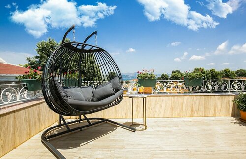 Отель чистый. Комнаты небольшие. Останавливались в номере 301 с балконом. Вид красивый. Кровать двуспальная, примерно 1,6 м. Постельное белье белоснежное, гостиничное. Несмотря на то, что небольшая, кровать очень удобная. В номере есть шкаф, холодильник, ТВ, зеркало со столиком, отдельно столик со стульями и прикроватные тумбочки. Обычно мы останавливаемся в сетевых отелях, привыкли к определнному уровню сервиса. Тут в начале ощущали, что тесновато. Гораздо меньше пространства. Однако, на о. Биюкада готовы остановиться ещё раз в этом отеле. Он близко к центру, почти в центре. Обедали, ужинали в кафе Сулейман балых и Конак. Вот очень вкусно каждое блюдо!