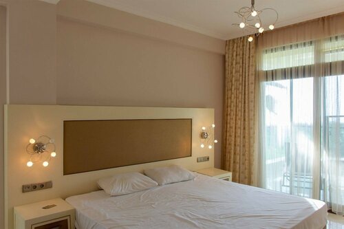 На пляж везёт автобус. Пляж обустроен хорошо,но Галька мелкая и крупная. Вход не удобный. И,что очень важно-пляж расположен в месте,где постоянно волны. Редко слабые,в основном сильные. Купаться практически невозможно. Но все устроено для комфортного бухания на пляже. Район расположения отеля-каргыджак. Бедное и неуютное место. Кафе нет,магазинов нет. Народ бедный и неприветливый. С Оба не сравнить. Отдохнули в общем хорошо. Больше туда не поеду. Знакомым не посоветую.