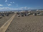 Пляж оставляет желать лучшего. Лежаки и зонты не новые, но пользоваться вполне можно. На пляже грязно. Считаю, что здесь дело в сотруднике пляжа. Довольно ленивый товарищ. На соседних участках других отелей было значительно чище. В баре на пляже можно только попить соки или горячие напитки. Закусок нет. Нам не понравился вход в воду. Пляж песчаный, но при заходе в воду мелкая галька и огромные камни, о которые многие получали ушибы и ранения! Если море спокойное, то их видно и можно и обойти. Но при малейшем волнении камни не видно под водой и часто волнами сшибает и падаешь прямо на них! Очень опасно! Еще при спуске в воду очень быстро становится глубоко и при выходе получается, что как бы поднимаешься на небольшую горку. К сожалению, в период нашей поездки (конец сентября – начало октября) штормило часто. В воду заходили бегом – в перерывах между волнами, чтобы не упасть на камни. Иногда из-за этого приходилось отказываться от купания совсем (((