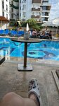 Плюсы: Персонал. В любое время дня и ночи можно обратиться, есть русскоговорящие; На ресепшене есть обмен валют по приемлемому курсу; Номера не с самым свежим ремонтом, но за свою цену пойдет; На территории живут очень дружелюбные кошки, которые не против, если вы их погладить и угостить; Хорошее расположение, рядом имеются различные магазины, по пн приезжает базар и размещается по всей улице, до моря 10мин ходьбы неспешным шагом. Есть свой пляж с бесплатными зонтами , лежаками и Wi-fi.