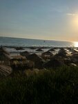 Солнце на всем пляже с 10:00 и тенек только под бетонным навесом, где места ограничены и их занимают до 7:30. Зонтики маленькие и совсем от солнца не защищали.