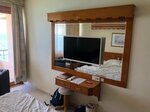 Так же есть телевизор, но он повешан по центру большого зеркала – странное решение. Все же зеркало хотелось бы иметь в номере больше чем телевизор.
