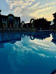 Бассейн есть, один с аквапарком и там же мы играли в ватерполо, второй более спокойный и большой. Аквапарк,находится выходя из отеля перейдя улочку,где практически никто не ездит,там же вечером мини диско и выступления-развлечения. Всегда спасатель сидел и следил за порядком и детьми