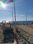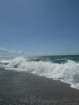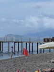 У отеля свой пляж, ну идти от отеля 3- 5 минут, через дорогу, где пешеходов не особо пропускают, будьте осторожны! перейдя дорогу заходишь в туннель подземный, ночью если идёшь на пляж загорается свет автоматически! волны были всегда,иногда небольшие иногда сильные,но у берега было весело купаться,глубоко прям через пару шагов,на берегу крупный песок,в воде небольшие камни,а в глубине крупные камни, плавать мы умеем , муж постоянно прыгал с пирса и в основном оттуда мы ныряли в море! Нам море зашло,мы довольны. Лежаки всегда есть свободные,пляжные полотенца выдают бесплатно, менять можно каждый день, но мы сушили их на балконе нам не принципиально! Прозрачная голубая вода . Бар на пляже работает с 10 утра, кухня – с 11. Из еды: салаты, булочки, котлеты, фри,наггетсы. Там же есть мороженое! Такое же меню и в аквапарке.Вода в холодильниках стоит в свободном доступе, а также алкогольные напитки пили там пиво! Свободно курят на пляже, курить можно везде в Турции, для курильщиков это отлично)