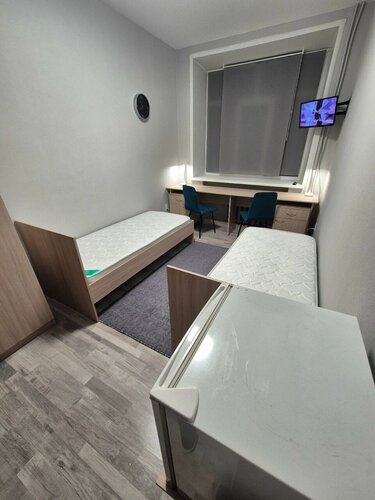 Цена, конечно, впечатляет ( 3500 за двухместный номер с душем и туалетом внутри ), но выбора в Алапаевске нет. Одноместных номеров то ли тут нет, то ли они всегда заняты. В номере есть кровать/кровати, чайник, холодильник, телевизор, посуда, шампунь и гель для тела, полотенца, также можно выйти на балкон, подышать воздухом. Номера в одной стоимости различаются по планировке, есть с двумя комнатами, есть с одной, но общая площадь примерно одинакова. В целом мне тут понравилось, на первом этаже красивые растения. Кафе при гостинице нет, но рядом есть магазин Монетка. В коридорах стоят кулеры с водой