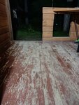 А ещё крыльцо — просто позор. Старая краска давно облупилась, оголились доски, всё в ржавчине и грязи. Выглядит это не просто неопрятно — унизительно для базы, которая позиционирует себя как место для отдыха.