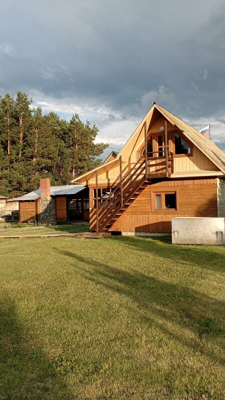 А рядом Катунь, совсем немного пройти. Удобный обустроенный берег, тропинка вдоль реки. Магазины рядом есть. Парковка большая. Во дворе красивое костровище и огромные качели. Просторная веранда-кухня. Всё по высшему классу, и наш номер, и дом для большой компании!