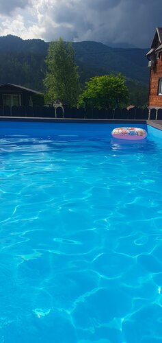Первые три ночи отпуска мы провели в отеле АлтайДача22. Сомнений было много, но считаю, что это был самый удачный выбор и места, и отеля. Барангол был выбран за расположение, так как рядом находится Камышлинский водопад, на который приезжает большинство туристов Алтая. От аэропорта можно доехать на такси за менее 2000 р, как по цене до курорта Манжерок. Близость к Манжерок позволяет доехать к его основным достопримечательностем, но при этом не жить в многолюдном селе, не ощущая того дыхания природы, ради которого и едут туристы. А к уединению, в АлтайДача22 подогреваемый бассейн, и он не пах хлоркой, и это огромный зачёт, хотя бесспорно какой-нибудь гипохлорит туда периодически наливают, но очень комфортно и по температуре, и по чистоте. Поэтому спать, наслаждаться видами из окон на две стороны, а значит на две горы, и видами прям из бассейна, особенно круто в дождь, или в утренней туманной дымке, и периодически есть. Когда эта программа выполнена, то гулять. И конечно на водопад, причём желательно всеми способами туда добираться и катером и по мосту.