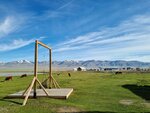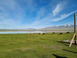 Про красивые виды: вопрос вкуса, озеро-это небольшой водоем, отель стоит на дороге у села, вдали видны заснеженные горы.