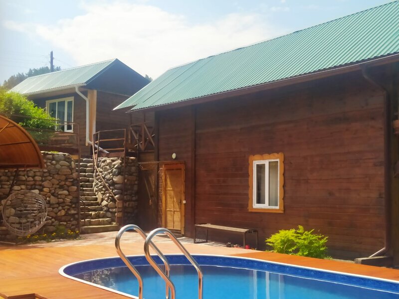 «Речной Оазис» предлагает уютные номера с ванными комнатами и Wi-Fi. В некоторых номерах есть мини-кухня с бытовой техникой и посудой. Есть общая кухня-гостиная с техникой и посудой, стол для больших компаний, диван и телевизор. На территории — зона для барбекю, костровая зона с видом на реку, баня из массива кедра, бассейн. Рядом холодная горная река. Предоставляется парковка. Возможно размещение с домашними животными (по согласованию с администрацией). Недалеко магазины, до реки Катунь — 10 минут пешком. Поблизости кафе и рестораны: в «Алтын-Ай» подают бургеры, пирожки, пельмени, лагман, салаты, супы; в «Горном источнике» — пиццу, шашлык, лагман, салаты, супы, блюда на гриле; в «Куюм» — пиццу, манты, супы, плов и другие блюда.