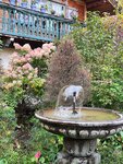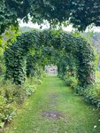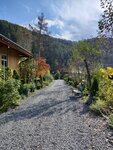 Большая территория, ухоженная, много видов различных цветов, деревьев. В пруду есть рыбки. На территории также есть зоопарк: гуси, петухи и куры, козочка.