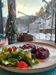 База очень нравится. Мобильные сети не ловят, можно отдохнуть головой. Ловит только WiFi базы. Дома чистые, укомплектованы всем необходимым: принадлежности для душа, полотенца, капсульная кофемашина, посуда, раньше стояли индукционные плитки, но их убрали (а жаль), чайники. В летних домиках есть летние кухни, в зимних террасы с креслами-кочелями. В домах по температуре комфортно в любое время года (были в октябре и летом). Новый ресторан тоже понравился. Есть комплексы по питанию. Всё вкусно. На территории есть небольшой бассейн, но когда много детей невозможно там находиться. Есть площадка с навесом для малышей с игрушками, так же несколько тренажеров (правда туго работают, но они есть). Вдоль речки стоят деревянные качели, можно сесть расслабиться. На другом берегу есть небольшой водопад, через мостик можно дойти до него. В общем место неплохое, но много семей с детьми приезжает-иногда шумят.