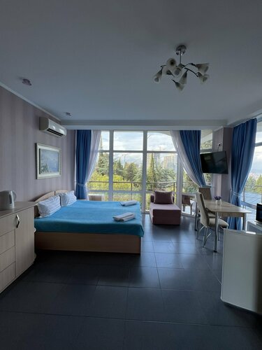 Жильё «Алушта на ладони» предлагает комфортабельное проживание. В комнатах есть мебель, Wi-Fi, санузел с душем, ТВ, кондиционер, холодильник, электрический чайник, посуда, постельные принадлежности. В каждой комнате — балкон с видом на море и горы.