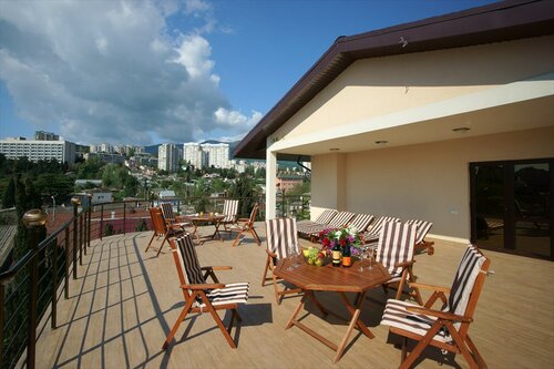 Итак поехали… Дочитайте до конца )) Отдыхали с середины по конец июня, 2 взрослых и двое детей. Номер - просто супер ( 2комнатный люкс с кухней), реально просто огромный. Панорамные окна в двух комнатах, огромная лоджия! Есть вся необходимая посуда, лифт. Открытая крыша с лежаками и столиками. Жили на 4 этаже, штукатурка на балконе осыпается, но это терпимо, по номеру были недочеты, но несущественные. Расположение - достаточно удобное. Рядом все есть, до моря мин 10 пешком. Рядом с «отелем» магазин «Пуд», рыбный магазин и кафе, столовые, рестораны. На территории гостевого дома, больше называть его «отелем» не могу, есть мангальная зона на 2 беседки и 2 мангала, прям под окнами остальных гостей, если кто то жарит шашлык и у Вас открыты окна, вы, как будто, сидите с ними за столом. Как «это» получило 3 звезды я не пойму никогда… Оплата только наличными (когда вы приедете, вас пошлют в банкомат за налом). Никаких чеков и договоров, уборка - раз в 4 дня (хотя на сайте написано, что ежедневно). На правила проживания администрации плевать. Мы жили с 2 детьми и тут приехала компания, которой кроме беседок и крыши ничего было не нужно, мат перемат с утра и до 1-2 ночи, администрации пофигу… ну и самое интересное, вид из огромного номера с панорамными окнами и шикарным балконом выходит наааааа, на стройку your bonny wrote, на стройку! Там строят микрорайон! Вы будете просыпаться с началом стройки (8.00) весь день ваша одежда, которая висит на сушке, будет пропитываться пылью и выхлопными газами от строительной техники, а ваши дети, сидя на балконе и кушая черешню, будут впитывать слова «русских» строителей. А когда стройка заканчивается, «теплых» компаний из беседки… На фото - вид с балкона. Уехали на день раньше, не было сил терпеть это больше