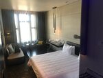 Фантастика! Расположен в самом центре города, напротив виден невероятный жд вокзал. Расположение идеальное для туристов приезжающих на несколько дней! Просторные номера, красивый вид из окон. Сам отель очень интересный, гаечки, болтики, летающие сперматозоиды))) приятное лобби. В номер гостям предлагают использовать косметику Elemis. На ночь приносят лавандовые ароматы.
