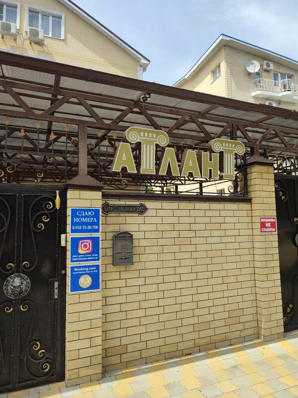 Не первый год отдыхаем в гостевом доме "Атлант". Номера уютные, чистые, уборка каждый день, что для меня очень важно, так как мы отдыхаем с маленьким ребёнком. Прекрасный, уютный дворик, где можно вечером или днем отдохнуть от жаркого солнца! Сам дворик оформлен с душой - есть и качели паутинка, и детский уголок, и столы, где можно покушать, даже есть стеллаж с книгами старинными! В самом гостевом доме есть кухня, где присутсвует вся необходимая кухонная утварь (тарелки, ложки, вилки, кастрюли, сковородки и т.д.) Персонал очень приветлив! Сама хозяйка Наталья Олеговна очень добрый, отзывчивый человек! Каждое утро встречает с улыбкой и предлагает вкуснейший кофе! Всегда поинтересуется как прошел день, объяснит как пройти к нужному нам месту, даже выходит на улицу и показывает куда идти! Валентина (помощница Натальи Олеговны) очень добродушная и приветливая женщина! Мы прям подружились! В отношении месторасположения: рядом продуктовый рынок, доступность ВСЕХ магазинов, до моря не далеко. Вообщем, в следующем году опять едем в этот гостевой дом!!!