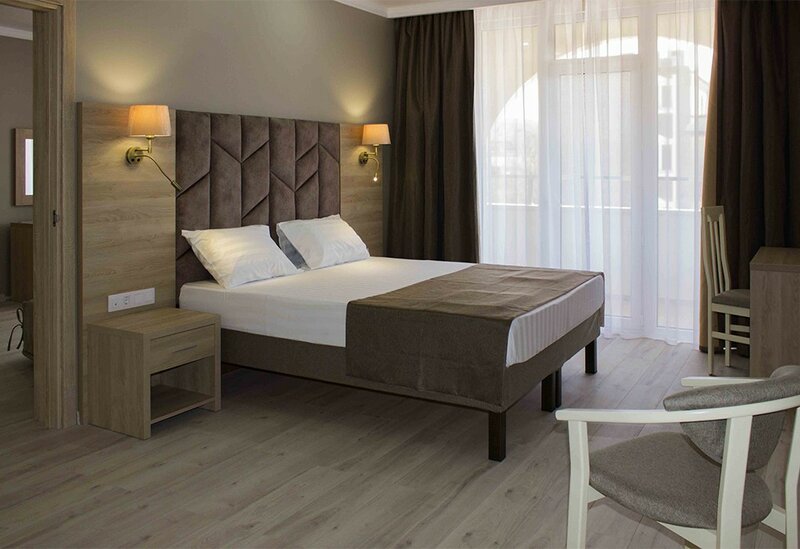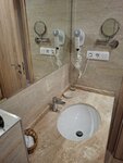 Итак,про номер.Номер просторный,все как на фото(стандарт).Чисто убран.Белье и полотенца хорошего качества,матрас супер.Халаты «вафелька»,странно,но имеет свои плюсы.Мне не хватило освещения основного,но что есть.Минус есть в доп месте.С дороги долго разбирались с этой чудо раскладушкой,честно,почувствовали себя дебилами,но проехав 2000 км нам простительно🤣🤣🤣🤣Спать не удобно на ней было ребенку.По ванной комнате нареканий нет.Просторная душевая,души тропический и классика,гель для душа очень специфический аромат,шампунь не пробовала,мыло норм-носочки простирнуть👍🏻.Проблем с водой не было за 9 дней ни разу!!!Думаю,отзывы изучены все,мы попали на 100% загрузку и проблем не было.Зеркало с подсветкой,доп свет на зоне зеркала,зеркало увеличительное-макияжи без проблем.Вот с феном недочет.Девочки,у кого густые волосы-берите свой.Фен быстро нагревается и потом не включить его.