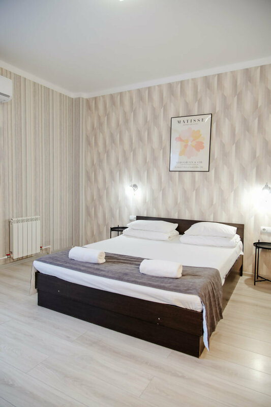 Большой балкон со столом и стульями, есть сушилка,пепельница.Большая кровать с удобный матрасом. В номере есть все необходимое: чайник, столовые приборы, холодильник,полотенца и даже освежитель воздуха(что редко встречается даже в более звездных гостиницах).