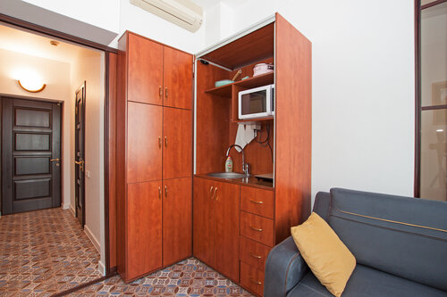Ну, это конечно не отель, максимум гостевой дом из 00х. Выбрали его из за местоположения. До этого, останавливались в отеле по соседству, но в этот раз, там не было свободных номеров. Что удивило, цена с соседним отелем 3 звезды, (твердые 3 звезды) одинаковая. В номере слышно все, что происходит в коридоре, дверь, как обычная, межкомнатная. Вай фай есть, но не ловит совсем, связи тоже нет, даже сообщения не приходят, в интернет не войти. Нам на отдыхе приходится работать, и для нас это было огромным минусом. Полотенца и постельное сушат на улице. Полотенца как высохли, так их и положили, грубые, не отутюженные. В принципе полотенцем было брезгливо вытираться, они явно отжили свое.. судя по лейблу на полотенцах они из другого отеля. Я подумала, что они отслужили свой срок и их продали на тряпки). Обои в номере отходят, на тюле пятна. На потолке плесень. Саше, (узкая дорожка в ногах кровати (загуглила название)) просто как половая тряпка, ну лучше бы уже не стелили ее. В коридоре пахло как в детсадовской столовке, видимо хозяева что то готовили. Я бы побоялась брать там завтрак. Заселение долгое, так как, все вписывается в журнал вручную. Одна заезда за вид из окна, вид огонь.