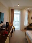 Номера с балконом и видом на море чистые, уютные, с интересным дизайнерским решением, белоснежным бельём. На столе бутилированная питьевая вода, чайные и кофейные наборы.