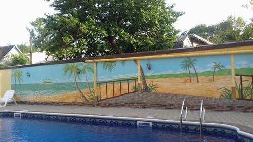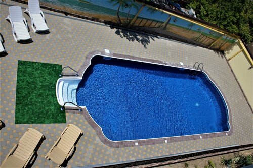 Место, в которое можно с уверенностью сказать, что вернусь и не один раз! Начиная от вежливости самих хозяев, и заканчивая персоналом! До дикого пляжа «высокий берег» идти минут 15, до городских пляжей подольше, но они грязные. Лучше всего купаться на диком пляже, море кристально чистое. Очень-очень чисто, как на территории, так и в самом номере. Уборка каждый день, меняют даже ванные коврики! Полотенца с собой можно не брать, предоставляют чистые, без каких-либо затертостей. В гостевом доме имеется вайфай, предусмотрена общая кухня на первом этаже, и большое помещение для приема пищи. В номерах душевая кабина, чайник, фен, холодильник, телевизор, кондиционер. В ванной имеется небольшой тазик. Выход на балкон, сушилка, два стула и стол, пепельница. Душевая кабина очень чистая, удобно, что после приема душа, ничего не плывет, и не нужно вытирать дополнительно за собой. На территории расположен бассейн, лежаки, душ и туалет. Есть мангальная зона. У меня был поезд поздно вечером, до 12:00 я покинула номер, но находилась на территории гостевого дома. В общем, впечатления положительные, да и только. Огромное спасибо Валентине и Александру за такой отдых. Успехов Вам!