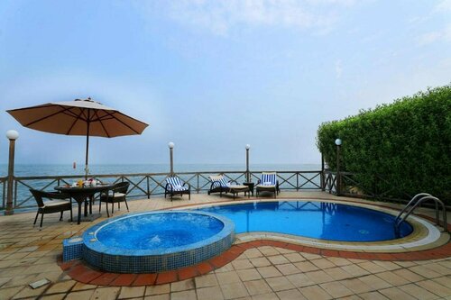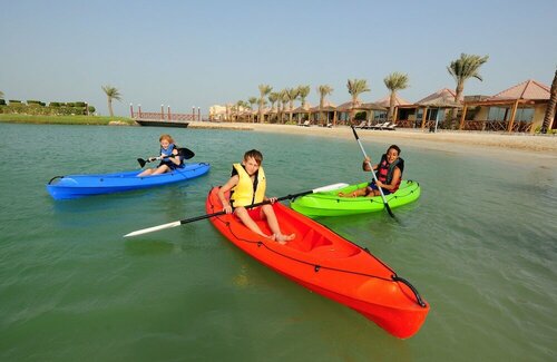 Итак, неделю назад как я вернулась из al bander resort. Отель действительно расположен так, что вокруг него в принципе ничего нет. Зато большая красивая территория, на ней расположены сами домики отеля, бассейны, джакузи, ресторан для приема пищи- завтрак, обед, ужин, тренажерный зал, рыбный магазин с кафе, теннисный корт. У меня было включено питание- завтраки и ужины( можно было выбрать обед). Завтрак - шведский стол с 7.00 до 10.30, ужин в том же ресторане- с 19.00- 21.00. на ужин приносят меню, оно на английском языке. То есть названия блюд и составляющие на английском языке. Весь персонал отеля говорит либо на арабском либо на английском( с арабским акцентом) я говорю исключительно на русском и это доставляло мне проблем. В отеле нет браслетов и персонал ресторана не знает что входит в стоимость твоего проживания. Каждый раз приходя в ресторан мне нужно было пройти квест, чтобы можно было поесть. Также в домиках с терассами исключительно треугольные розетки, три прорези, не подходящие под российские стандартные вилки. В домике есть чайник( ни всегда горит лампочка, нужно просто подождать когда он начнет закипать), пакетики с кофе, чаем, сахар , сливки одноразовые, две маленькие бутылочки воды. За территорией отеля при выходе под шлагбаум и направо пройдя метров 100 есть маленький продовольственный магазинчик, типо бытовки. Также по приезду попросят оплатить туристическую пошлину 3.30 дирхам за одну ночь. Недалеко мечеть и в течении всего дня периодически слышны молитвы В отеле хорошая уборка, услужливый доброжелательный персонал. Мне все понравилось, тихо, спокойно,красиво.