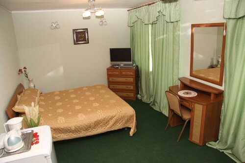 Неповторимая аутентичность: Интерьер отеля — это путешествие в прошлое. Вы увидите просторные холлы с мозаичными витражами, которые помнят журналистов со всего мира, приезжавших на легендарные пуски, и космонавтов перед стартами.