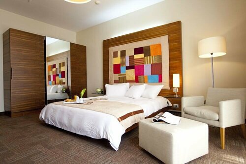 Были в отеле в конце июля, 4 ночи. Что было хорошо? 1. Расположение (рядом с набережной). 2. Высокий этаж (отель занимает 2 этажа, 17 и 18, в бизнес-центре) и отличные виды как из номера, так и террасы ресторана на 20 этаже, куда мы ходили на завтрак. В здании несколько лифтов, так что проблем с высоким этажом не возникало. 3. Номер большой и просторный, все необходимое было. Правда, не пополнялся мини-бар, но воду приносили постоянно. 4. Кондиционер хорошо работал, что спасало в жару (днем темп в городе поднималась до 35 град). На ночь открывали окно, уличный шум доносился, но не оч мешал. 5. Хорошие матрасы и постельное белье. 6. Ванна и душевая кабина в большой ванной комнате. Чисто и довольно симпатично. Хорошие гигиенические наборы. 7. В номере хорошо убирались. 8. Все вопросы, которые у нас возникали, сотрудники ресепшен решали быстро и сразу. Кстати, общаться на русском вообще не вызывало сложностей. 9. Завтрак не потрясал воображение, выбор довольно однообразный, но голодными не оставались. Как правило, брали овсяную кашу, заказывали омлет или яичницу, добавляли нарезки (была и красная рыба, и твердые сыры) и овощи. К чаю/кофе были десертики. Нарезки дыни и арбуза, фрукты и орехи - всегда. А вот вечером мы как-то решили посидеть на террасе с видом на освещенную набережную. Очень красиво и романтично!!! Впечатлил фирменный коктейль, рекомендую! А еще есть бар на 19 этаже. Не дошли)). Маленький открытый бассейн (на 9 этаже, кажется) и СПА видели, тоже не ходили )). Да, еще и телевизор не включали )). Что было плохо? Wi-Fi в номере постоянно отключался. Раздражало. Окна в номере грязные. Очень. Попросили утюг и доску, принесли быстро, но доска гладильная - совсем старая, даже стыдно, на мой взгляд, предлагать такую гостям. В итоге - могу рекомендовать, хотя цена, на мой взгляд, несколько завышена.