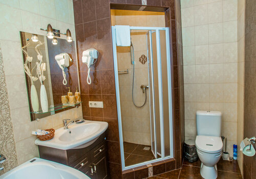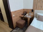 Номер достался единственный N8 считался как полулюкс, но номер еле дотягивал до эконом, и это при цене 5400₽ без завтрака, грязный, пошарпаный, холодный, ванна это отдельная история, входишь и упераешся в огромный "комод" который мешает и в душевую кабину пройти и на унитаз попасть, очень неудобно, крючков в ванной нет , одна полка и то в неудобном месте, зубного набора нет, нужно отдельно покупать, никаких проходных выключатель, ходишь по комнате включаешь, выключаешь всё своими клавишами, ну завтрак , отдельная история, по короткому меню, но я привык, в Арбате тоже самое, вроде как один собственник, концепция одна, но Арбат по уровню значительно выше, возможно