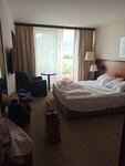 В гостинице есть ресторан, бар, тренажёрный зал, сауна, конференц-зал. Можно прогуляться по территории и в саду. И вы наверняка захотите отдохнуть у бассейна — он тут тоже есть. Причём крытый, открытый. Море тут близко — до него всего 111 м, поэтому легко можно планировать пляжный отдых. Есть возможность взять напрокат машину.