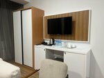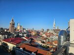 Хочется выразить наилучшие пожелания хозяину Резо и всей его команде за гостеприимство. Мы были первый раз в Грузии, и были опасения, как все пройдет. Не хотелось оформлять карту заграничного банка, поэтому выбрали оплату наличными при заселении. Я много переживала на этот счет- не отменят ли бронь, но мои опасения были напрасными, при заселении спокойно оплатили наличными. Более того, просили организовать нам трансфер с аэропорта, какого же было наше удивление, когда хозяин отеля не взял с нас за трансфер ни копейки, при этом нанятый им таксист еще и провел нам небольшую экскурсию по городу и по нашей просьбе заехал в банк, чтоб поменять валюту, и ждал нас. Номер люкс на 4-м этаже выше всяких похвал, и не только полностью соответствует фотографиям на сайте и описанию, но и даже лучше в реальности. Зря отель здесь не разместил фото открытых не занавешенных окон- вид из окна прекрасен, приведу здесь несколько фото, чтоб вы поняли. Резо и его команда приняли нас как родных, мы жили две недели словно у своих родственников- так все было душевно и дружелюбно. Хозяин каждый день сам лично постоянно присутствовал в отеле, помогал всем чем мог, справлялся как у нас дела. Завтраки заслуживают отдельного обсуждения- они проходят на крыше отеля, в том числе на закрытой и на открытой террасе, на завтрак Резо сам лично предлагает гостям домашнее вино, коньяк, ликер, чачу. Каждый день готовят гостям на завтрак домашние хачапури- отказаться просто невозможно)). Завтраки однообразные, но по-домашнему вкусные: есть разные овощные салаты, запеченный картофель или паста, всегда есть гречка, суп, жареная рыба или мясо (перец фаршированный, курица, куриные ножки в панировке,) были яйца, фаршированные семгой, круассаны, домашние пирожные, всегда были свежие фрукты- арбуз, дыня, виноград, персики, сливы, запеченная тыква или кукуруза, также всегда были вкусные колбасы, сыры, сосиски, творог, Сметана, вареные яйца. Кофе брали из кофе машины (оплата отдельно, 6 лари эспрессо). Наедались так, что потом полдня не были голодными). Ощущение было, что ты утром просыпаешься, поднимаешься в кухню к тетушке, она тебя уже встречает домашними жареными пирожками с картошкой. Выйти на открытую террасу с бокалом вина после завтрака было отдельное наслаждение, вид кругом прекрасный, слышен колокольный звон с церкви святого Николая, видно море и порт. Из минусов- еда пересолена (но это проблема везде в Батуми 😅), нужна раскладная сушка в номер и не очень хорошая уборка в номерах. Но это небольшие минусы. Из плюсов также наличие большого количества русских каналов TV, как федеральных, так и кабельных, хороший Wi-fi. Если мы еще раз и вернемся в Батуми, то точно ради этого отеля.