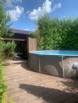 Баня, бассейн и купель с подогревом. Это просто отдельная история! Протопили легко, парит отлично. Спасибо за подготовленные веники. После бани так приятно было окунуться в бассейне, погреться в купели и посидеть на веранде.