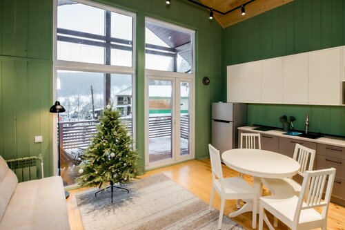 Были в домике на склоне, небольшой, для 3 человек хватит вполне, рядом, можно пешком туда, горка Яковка, для новичков самое то, цена на аренду и подьем небольшая.