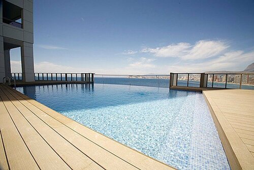 Это лучшее место в Бенидорме. Немного в стороне от шума и драйва ( 7-10 минут пешком), но при желании потусить все рядом. Не запаха жареных морепродуктов , как во всех аппаратах на первой линии, свой паркинг, бассейн. Дополнительный лифт прямо к самому морю, если лень идти на пляж (5-7 минут пешком. Только положительные эмоции. А вид из окна -это для художников и романтических минут.