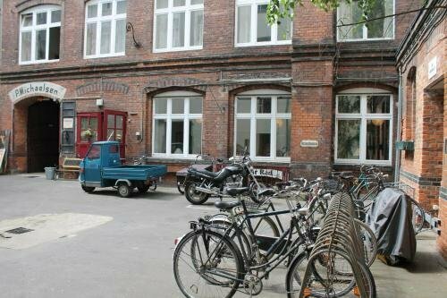 А еще очень порадовал внутренний двор-колодец, где бордовая кладка кирпича поросла плющом, растут цветочные кусты, есть кресло-качалка и столики, окошечки красивые, высокие и аккуратные в клеточку. Вообще просто мечта.