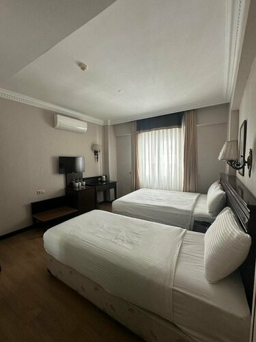 Останавливались в этом отеле в июле на три ночи. Расположение очень удобное недалеко от улицы Истикляль. Персонал приветливый, есть два небольших лифта. Номер просторный, каждый день уборка, приносят воду питьевую по 0.5, меняют полотенца и небольшие баночки шампуня, геля для душа. В номере есть чайник. Также предоставляли чай и кофе растворимый. В номере мини холодильник, удобная ванна. Вид из окна нам попался никакой. Со стороны спальни просто в упор на здание которое строится (соответственно днём там были рабочие, с другой стороны на сам отель, но был небольшой вид на море. Соответственно занавески были почти всегда закрыты. Большой минус это очень плохой вай-фай, который иногда сам по себе прекращал работать. Пульт от кондиционера просили на ресепшн,работал хорошо. Также в размещение входит бассейн и сауна, чем мы решили воспользоваться. Распологается бассейн в соседнем здании (видимо таже сеть отелей, только 4 звезды). Бассейн очень маленький на -1 этаже, кроме нас никого не было, полотенца сначала не хотели предоставлять, просили сами на ресепшн. Сауна была холодная (после нашей просьбы пришли сотрудники и включили её). В целом этот бассейн не стоит вашего внимания. Завтраки однообразные, но выбор есть. В целом мы почти всё время проводили в городе, поэтому отель вполне хороший, особенно за свою стоимость.