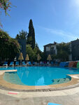 Территория небольшая,но визуально зеленая и приятная. Плавать в бассейнах их которых пьют коты не хотелось. Коты по всей территории и спят на диванах на ресепшене, на стульях в ресторане, на полотенцах которые сохнут у людей живущих в номерах на 1 этаже- не все коты выглядели здоровыми.