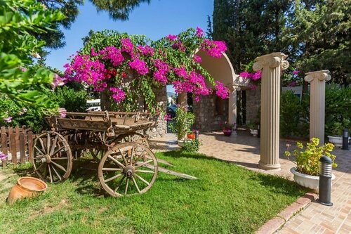 Отдыхали в начале сентября 2024. У нас был двухместный номер в корпусе, где расположен ресепшн, здесь все номера без балконов, окно выходит на улицу, немножко видно море, достаточно тихо. Номер простой, но уставший, есть все, что нужно, уборку делают хорошую. Вообще персонал очень старается, просто сам отель это четко три звезды, даже немного меньше. Еда в целом невкусная, овощи, сыры, фрукты (арбуз, яблоки) и сладости - это есть можно, горячего выбор небольшой и не слишком аппетитные блюда. Во время нашего отпуска отель был полностью заполнен, основной контингент - поляки и турки. Пляж отеля никакущий, стоят шезлонги на земле, вход в воду камни и вода мутная от того, что пляж ближайший к пристани Битеза, выбирайте себе пляж по вкусу вдоль променада и за напиток, например, проводите время там. Нам понравился соседний Амброзия. Рядом с отелем остановка долмуша, на котором можно доехать в Бодрум. Еще при отеле живут огромные собаки, они не агрессивные, но попрошайничают.