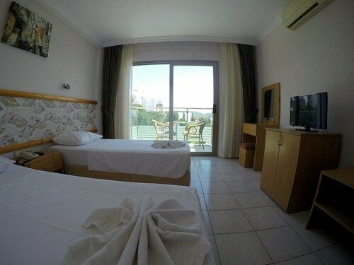 хорошее место, доброжелательный персонал, есть бассейн , беседка, прямо собственного поляжа нет, но другие отели не возражают. Отлично провели время Завтрак турецкий, разнообразный оливки, сыры, колбаса, яйца овощи фрукты кофе чай соки, всякие джемы, холодильник , душ туалет, кондиционер все есть в номере