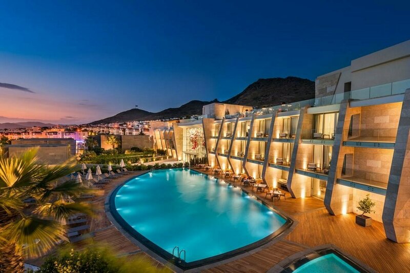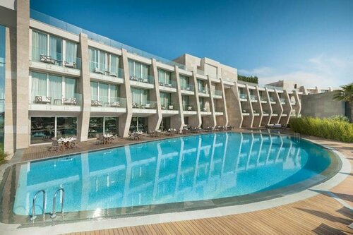 В целом нормальный отель. Все современное, номера большие, но кондер дует громко и может мешать спать. На верхнем этаже есть итальянский ресторан, оценить не получилось, в октябре он уже не работал. Хороший спа, бассейн крытый не так чтобы большой но поплескаться можно. Плюс района в том, что расположен практически на ровной поверхности, те не нужно подниматься по горе , как в других отелях, ну и рядом ровная променадная дорога до причала с яхтами, гуляй не хочу. При этом до Крепости отсюда ехать далековато, на такси выйдет за 1000 лир. Пляжная зона большая, лежаков много, вход пологий, песок. По питанию были завтраки. Нормально, но без изысков. Шампусик не давали. По обслуживанию не так чтобы огонь, официанты не сильно быстрые. Второй раз бы сюда наверное уже бы не приехал. Если что, в 6 минутах Испанский ресторанчик , там прямо вкусненько! На ужин можно ходить туда или чуть дальше к Марине, ну или в отеле.
