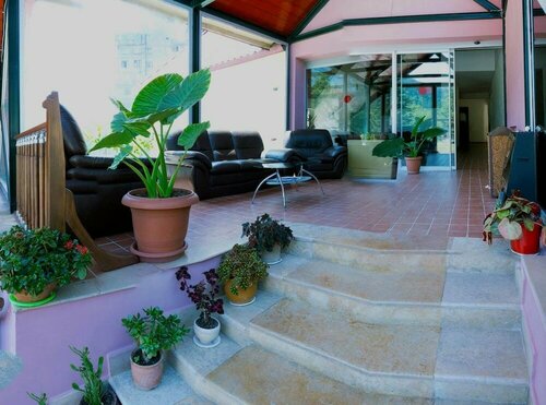 Вид из окон, на горы, просто потрясающий. Мы жили в двухэтажном номере. Из плюсов: чистая и удобная кровать, на территории есть детская площадка, лавочки, качели. В прохладную погоду можно посидеть в большом холле с камином,попить чай. Персонал очень вежливый.