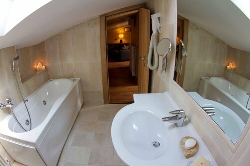 Фактически рядом с горнолыжным подъёмником.Чисто и комфортно в номерах.Парковка при отеле.Нормальный завтрак(а при желании и ужин)Очень доброжелательный и гостеприимный хозяин и отзывчивый персонал.И совершенно очаровательные собаки самоеды-талисман отеля.