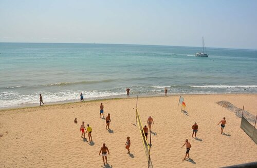 Близко от моря, песчаный чистый пляж, шведский стол с хорошим выбором блюд. Большая территория комплекса. Персонал в ресторане не всегда любезен и ленив. Вино предлагают в пластиковых стаканчиках в основном ресторане! Когда говоришь: в фужер, пожалуйста, кривят физиономию, хотя молодые парни, должны улыбаться на все свои четыре звезды!