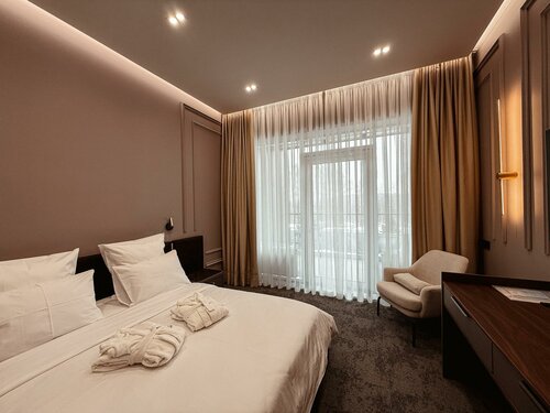 Отличный, уютный отель с хорошим рестораном. Вкусная кухня, приличная барная карта, разнообразные завтраки, приветливый и обходительный персонал. Номера современные, комфортные, есть все необходимое, холодильник, плита, кухня, если кто-то готовит сам. Отдыхали семьей с ребенком, остались очень довольны.