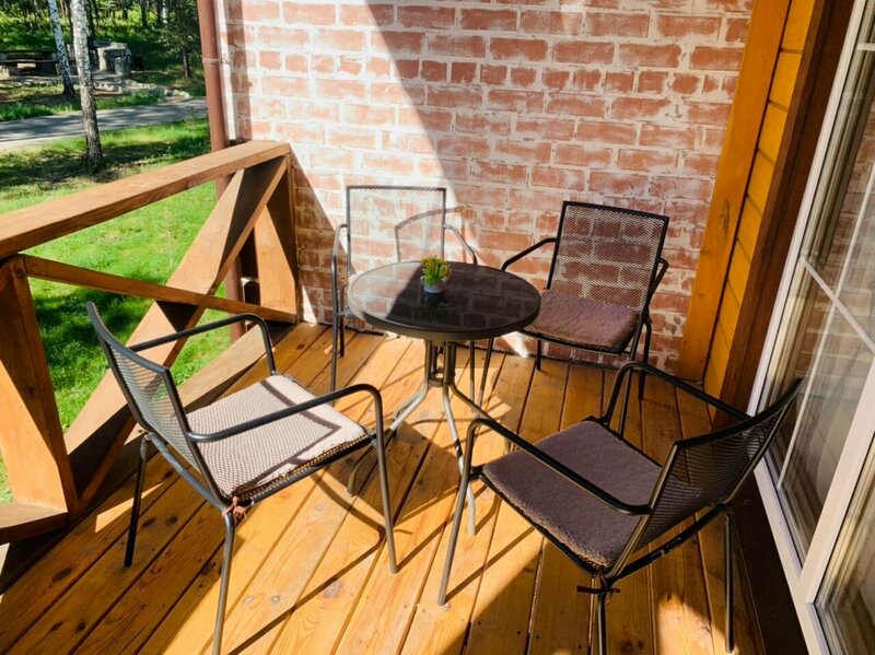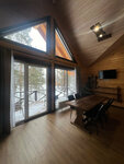 Мы с супругой жили в отдельной спальне, в гостиной — большие панорамные окна, вид на небольшой лес и строительные вагончики, но это не мешало отдыху. В целом атмосфера комфортная, домашняя.